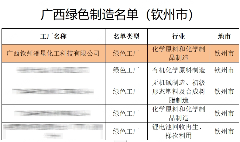 近日,广西壮族自治区工业和信息化厅公布2024年度广西绿色制造名单,名单分为绿色工厂、绿色工业园区、绿色供应链管理企业三类。其中,澄星股份钦州工厂——广西钦州澄星化工科技有限公司等60余家企业入选“绿色工厂名单”。